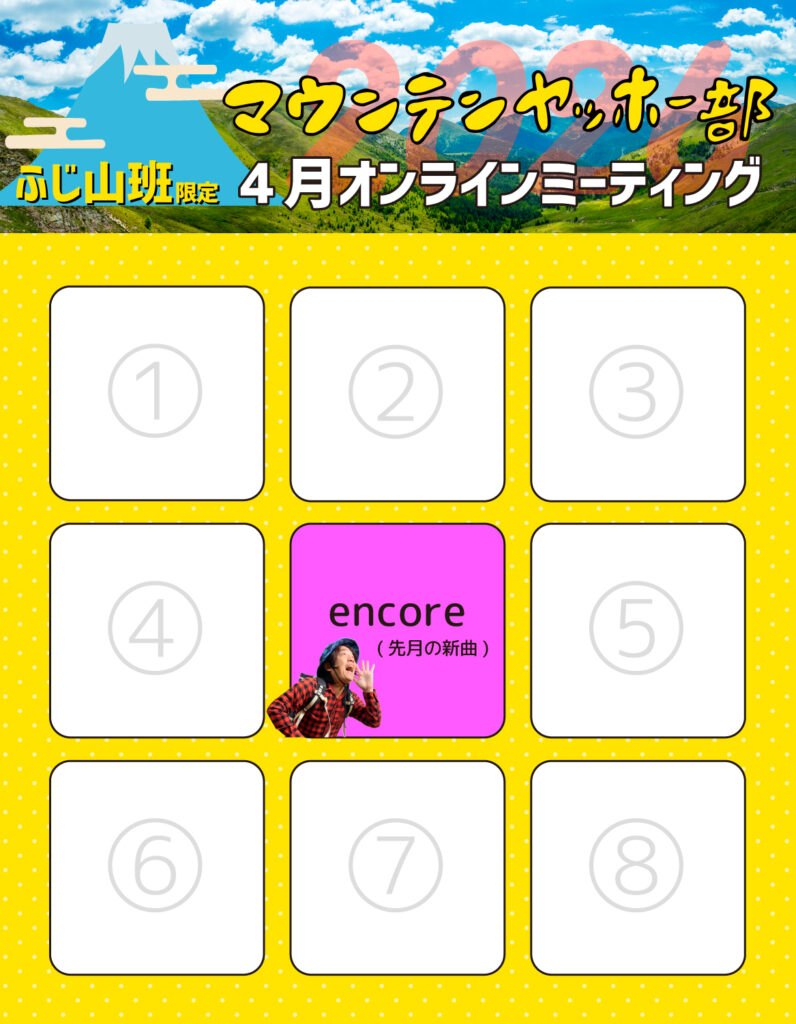 【ふじ山班限定】月一オンラインミーティング(配信ライブ)」にて行う『忍々ビンゴ大会』のお知らせです!